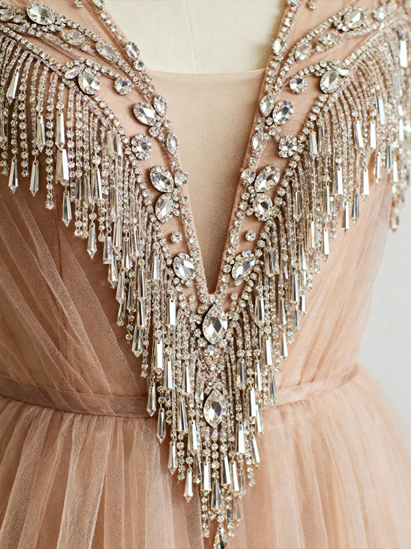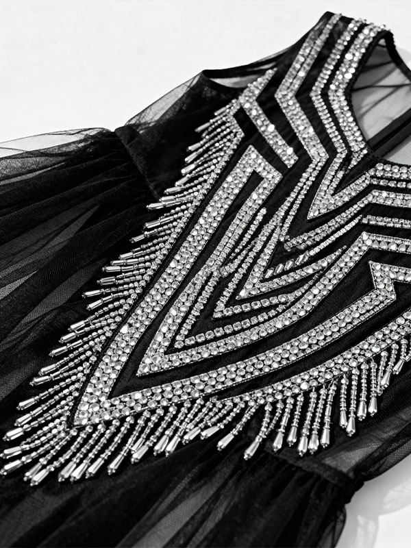 - High-density crystal and sequin embroidery