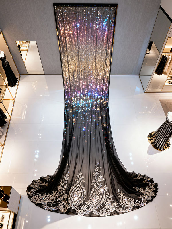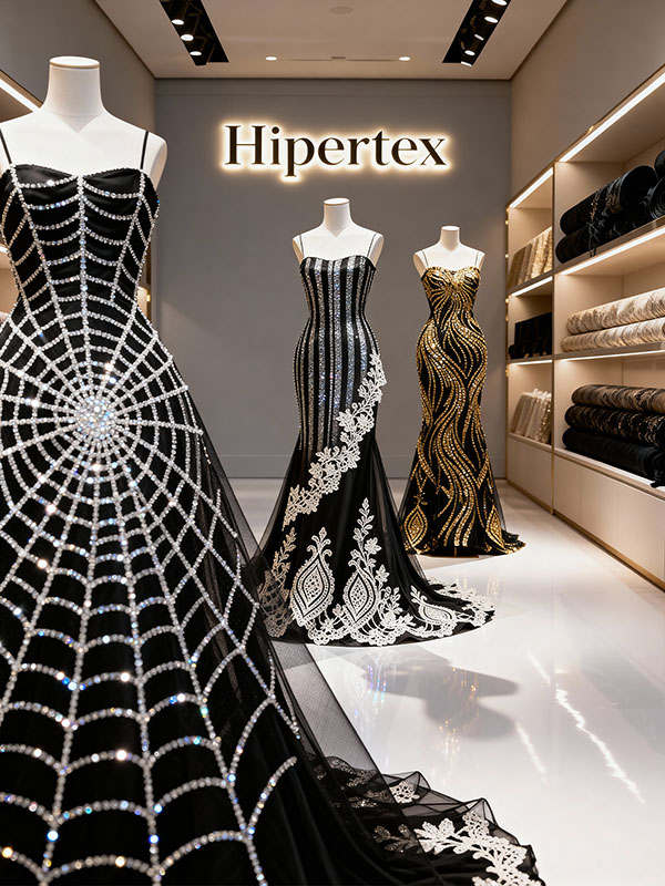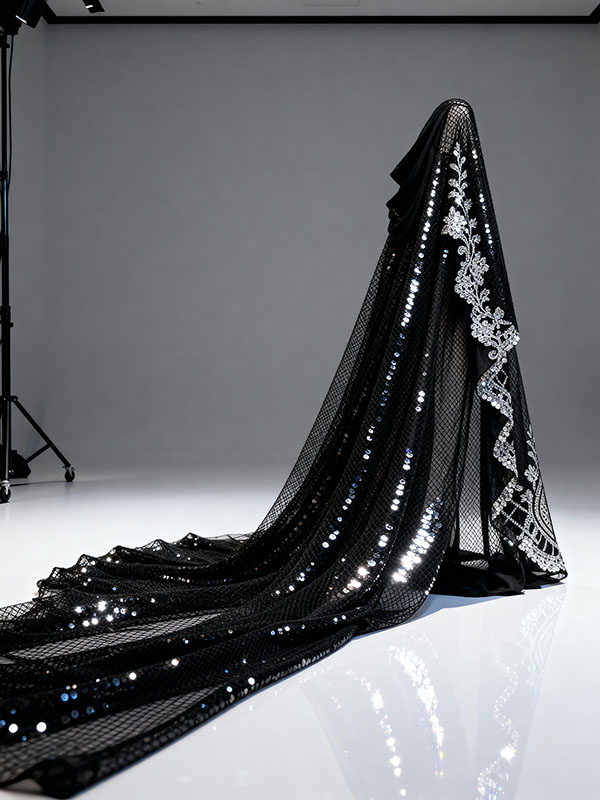 Sequin mesh fabrics dominate Dubai’s party and red-carpet fashion. Their lightweight structure combined with extreme shine makes them ideal for dramatic silhouettes that move freely while reflecting light from every angle.